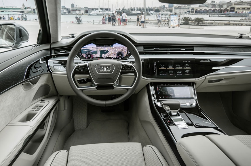Shifting to Dynamic mode does improve things a bit, but we’ll only really know once we have driven the A8 in India. Audi will soon be launching an active suspension version. We did experience various facets of this on a closed course, and most impressive for our market would be the body-levelling system; it lifts the car for bumps and automatically raises and drops the wheel in the exact opposite pattern of the bump, thus giving you a far flatter and levelled ride. Since this works on camera inputs, it’s likely to make it to our market and when it does, the horn will finally relinquish its position as the most overworked feature of a car.