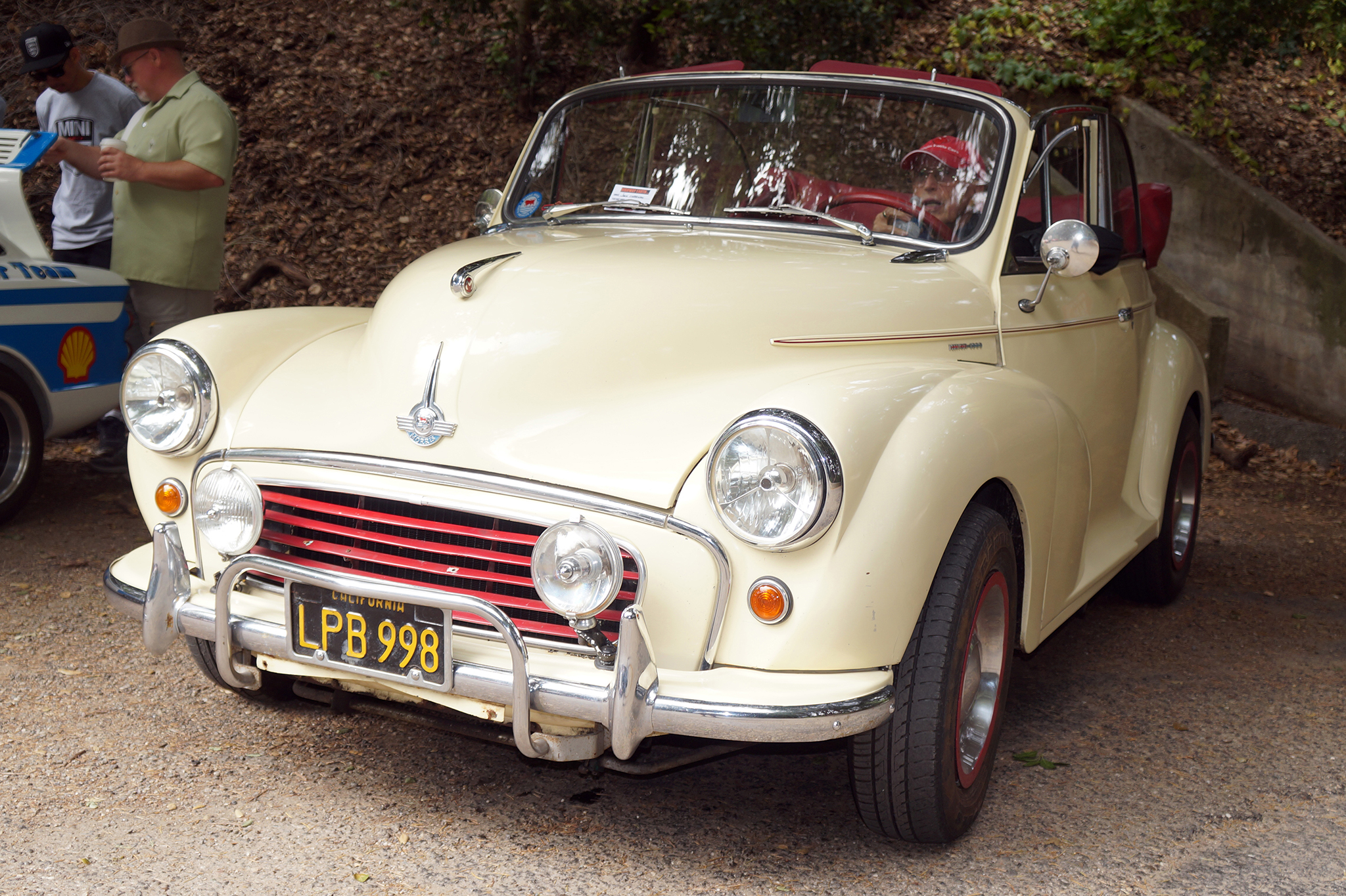 This Morris Minor is the convertible Tourer version. For reasons no one could explain, it was shod with Chevrolet Vega wheels.