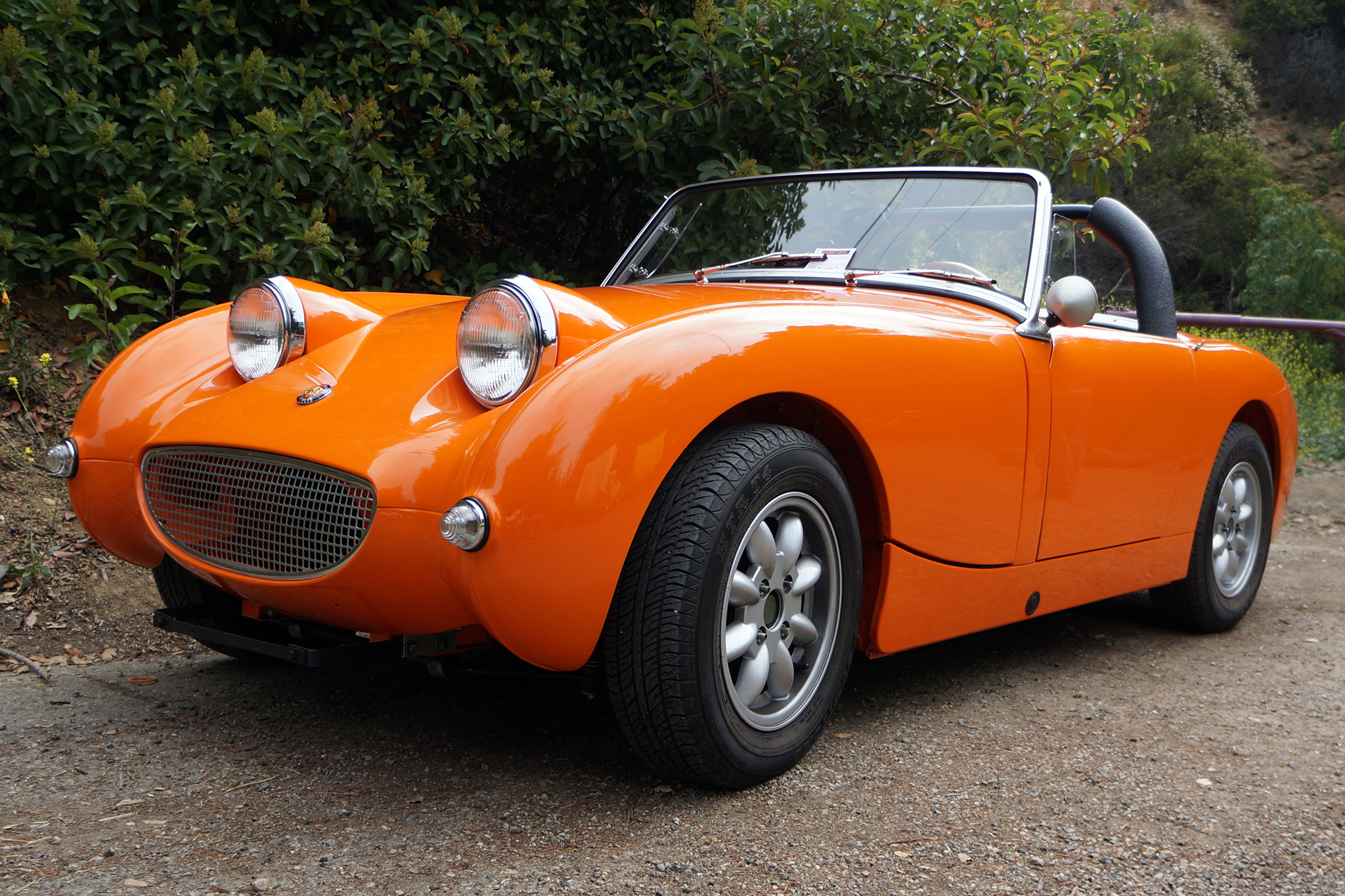 The 1967 Sunbeam Stiletto is a racy “coupe” version of the Hillman Imp. This particular example has been re-powered with the engine from a 2004 BMW motorcycle.